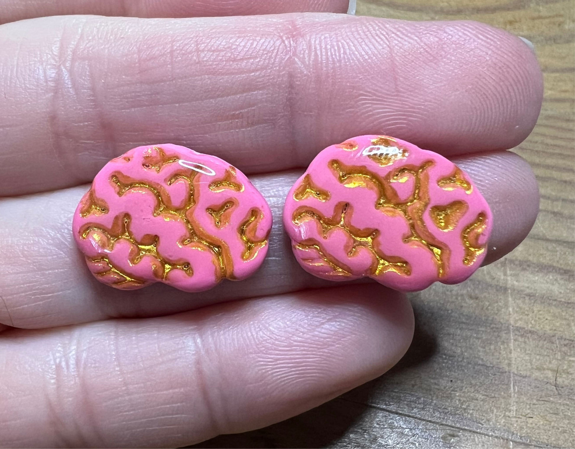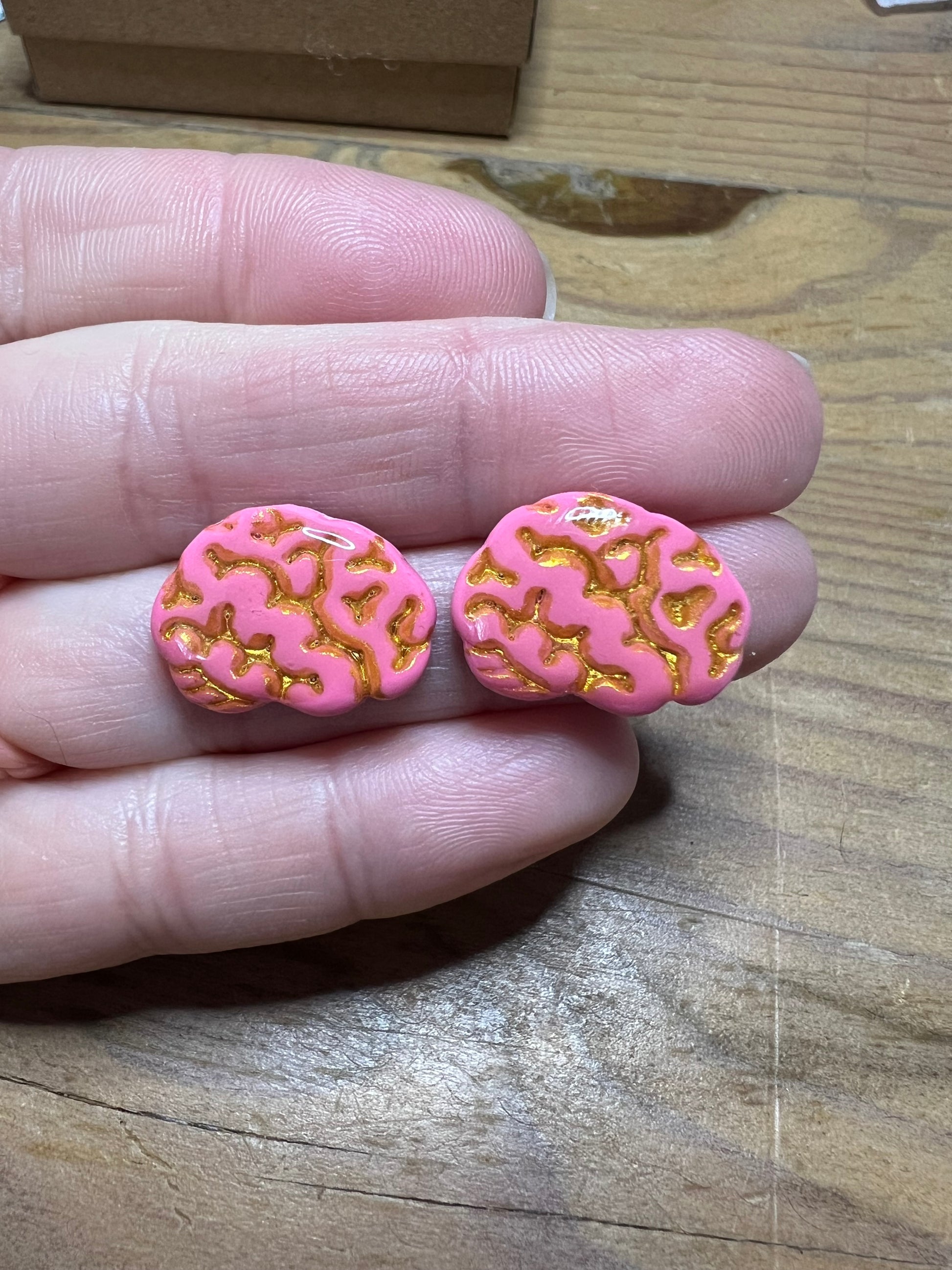 Brain set on 14K gold plated studs! Gold or black line details options.